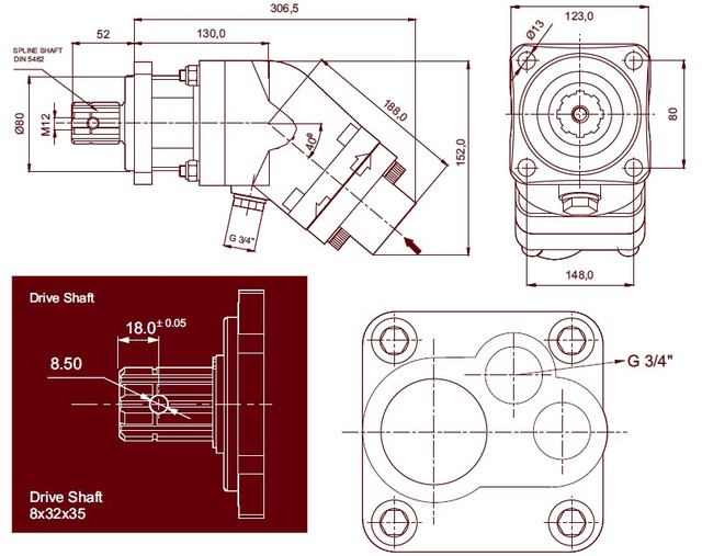 Двухпоточный аксиально-поршневой насос (АПН) (43 л/мин 1 поток / 43 л/мин 2 поток)