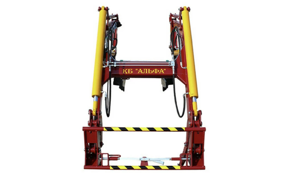 - Мощные стойки из стали, пакетной толщиной до 48 мм, с удобными быстросъёмными фиксаторами и предохранительными стопорами обеспечивают надежное соединение погрузчика с трактором.