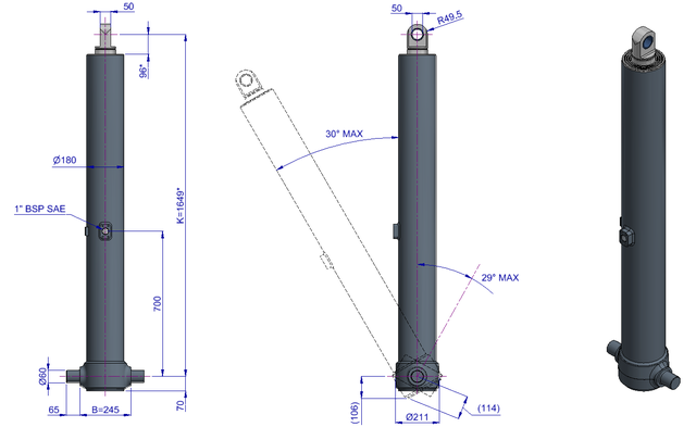 Гидроцилиндр FE A157-4-05540-118-K1649-HC (фронтальный с ухом) Hyva