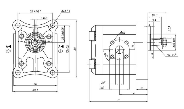 Шестеренчатый гидравлический насос Hydro-Pack 10C2,5X026 (2.5 см3, 3500 об/мин, 250 бар)